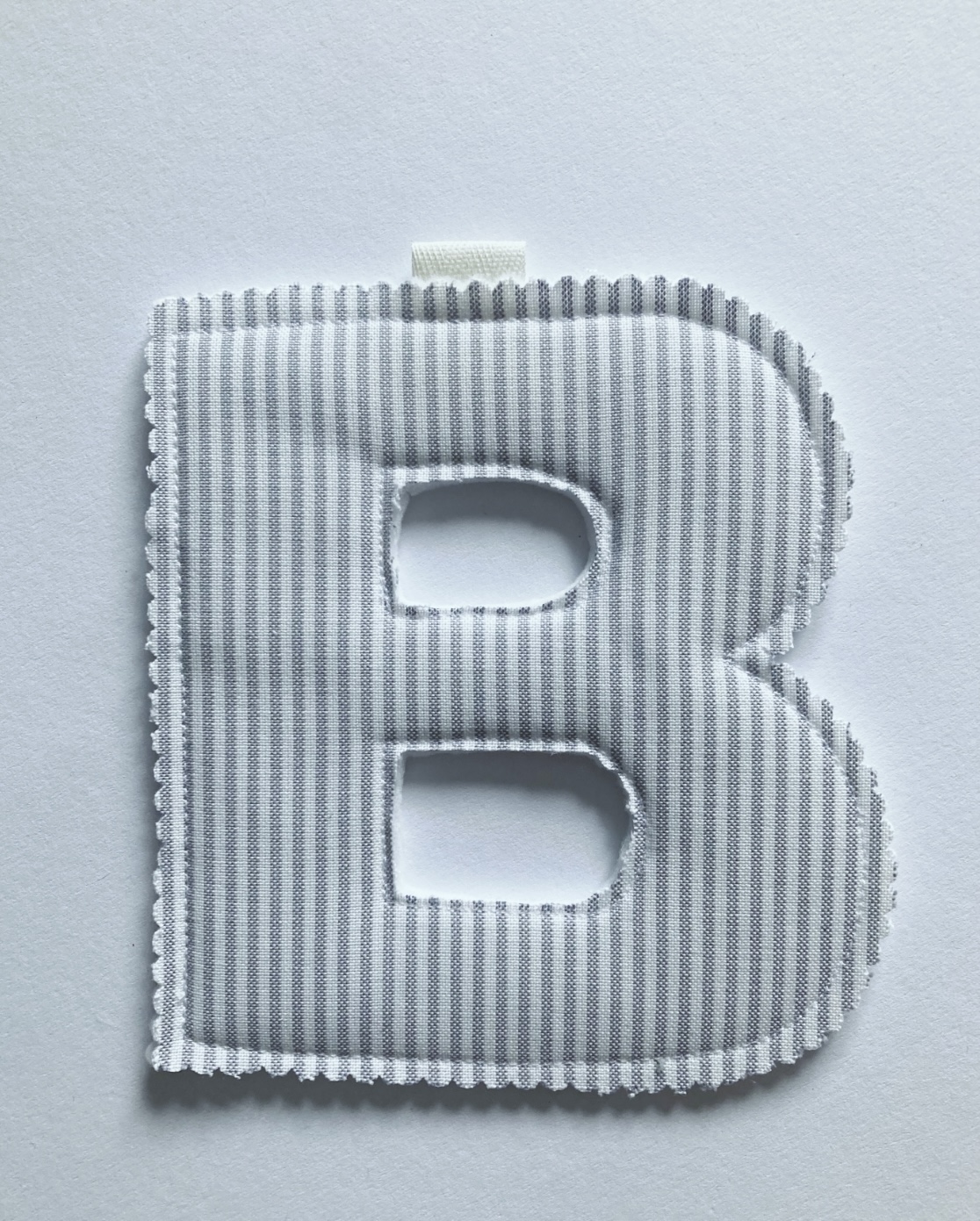Der Buchstabe ist auf Baumwollstoff + Volumenvlies genäht