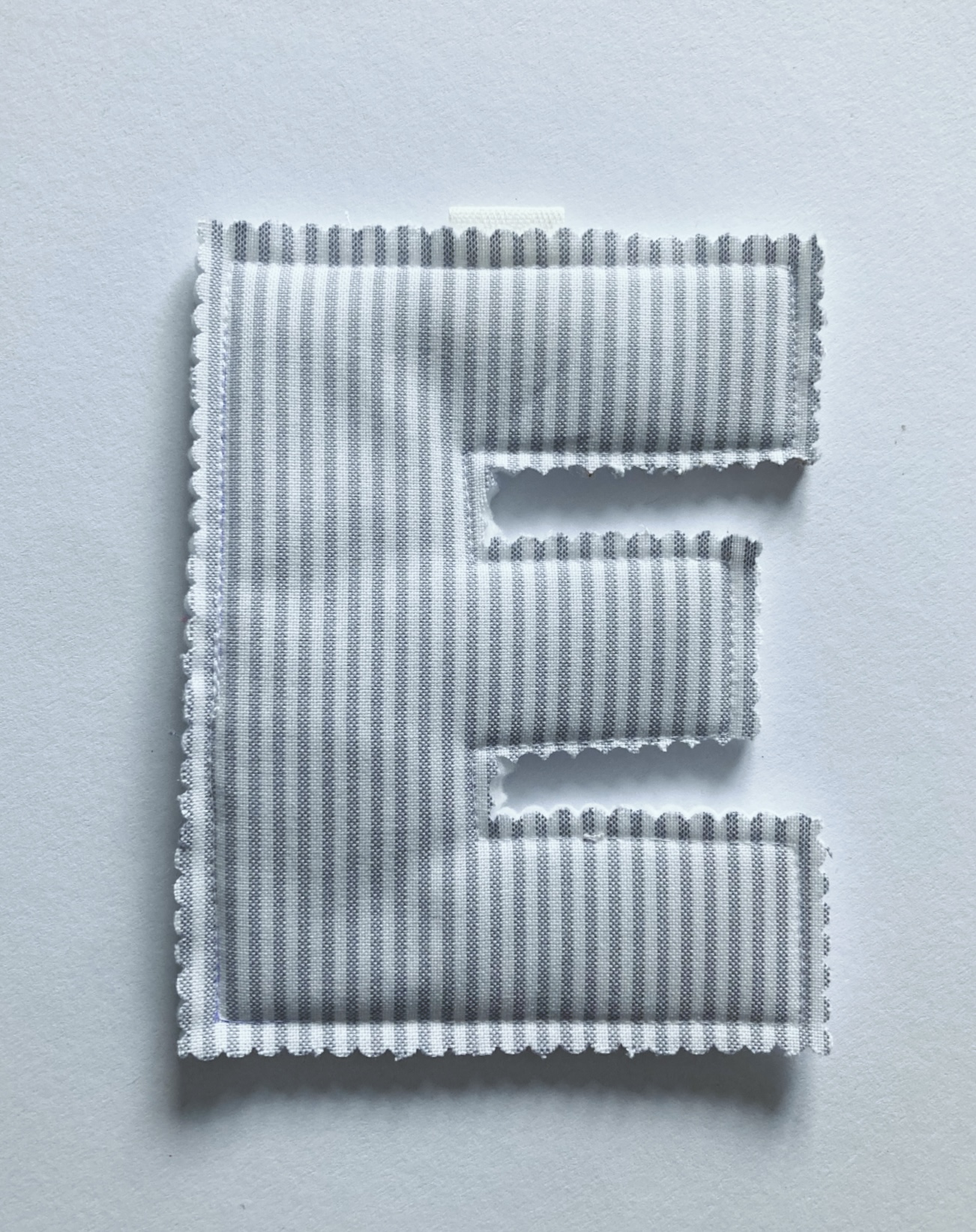 Der Buchstabe ist auf Baumwollstoff + Volumenvlies genäht