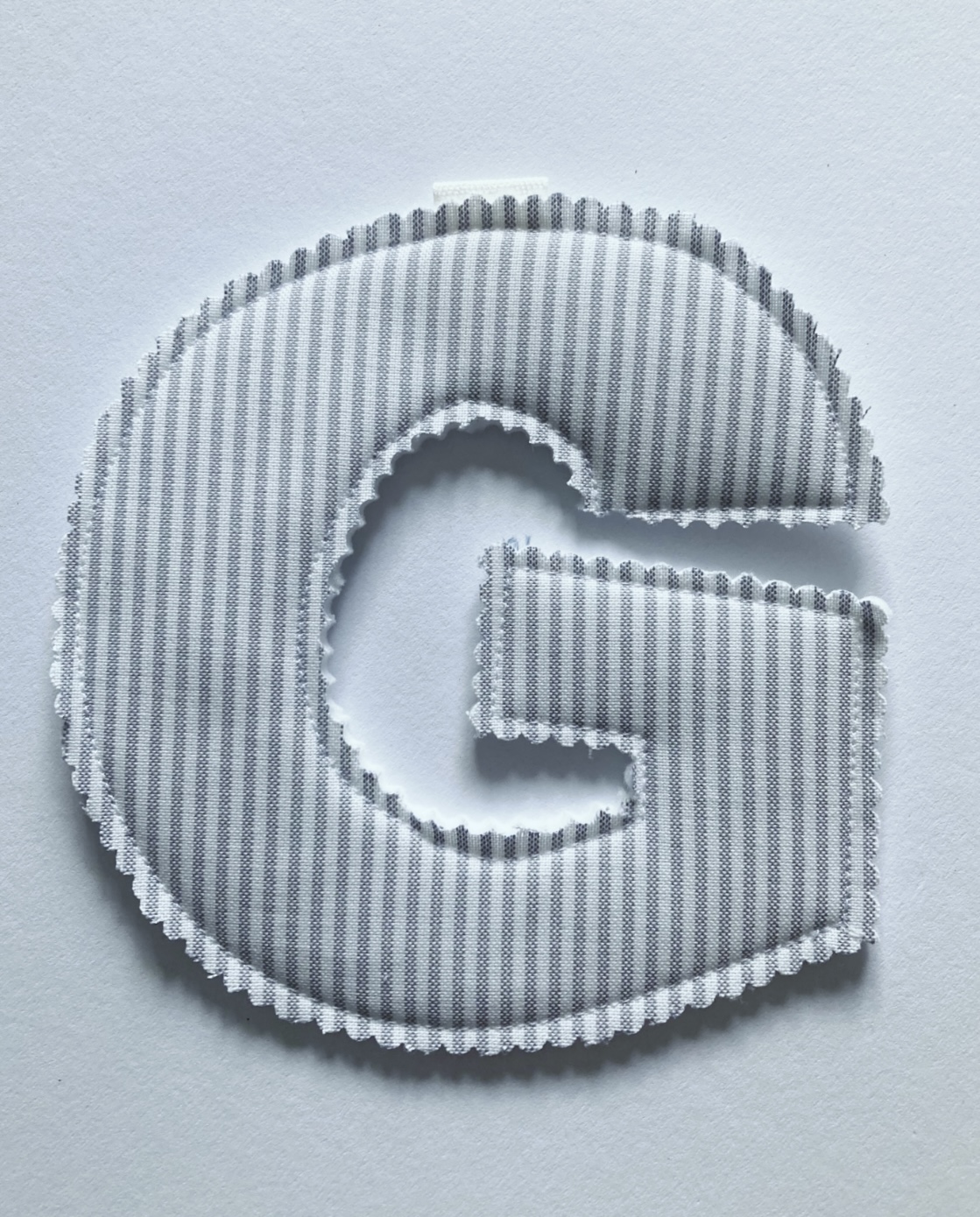Der Buchstabe ist auf Baumwollstoff + Volumenvlies genäht