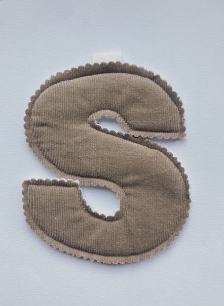 Der Buchstabe ist auf Baumwollstoff + Volumenvlies genäht