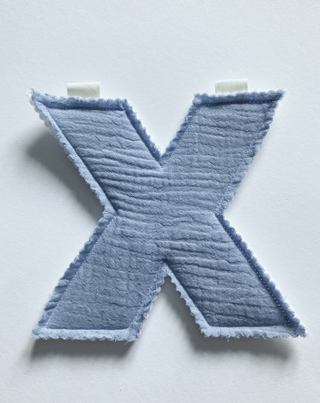 Der Buchstabe ist auf Baumwollstoff + Volumenvlies genäht