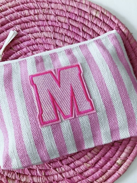Etui rosa gestreift mit Glitzer-Buchstabe nach Deinem Wunsch