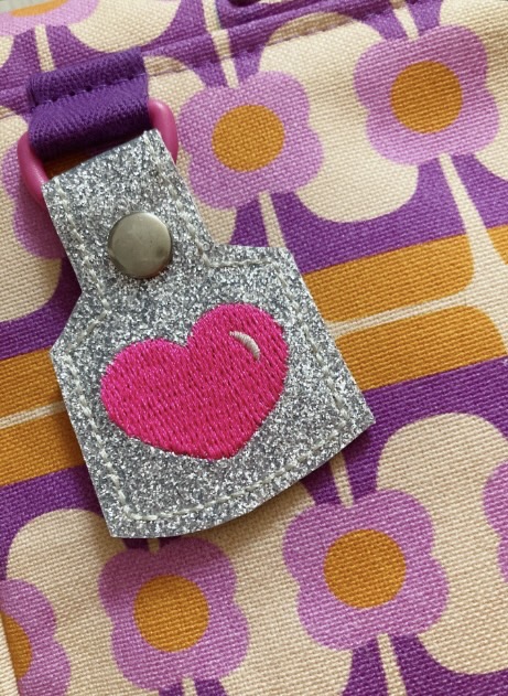 Mit Glitzermagnet und Anhänger an der Rückseite